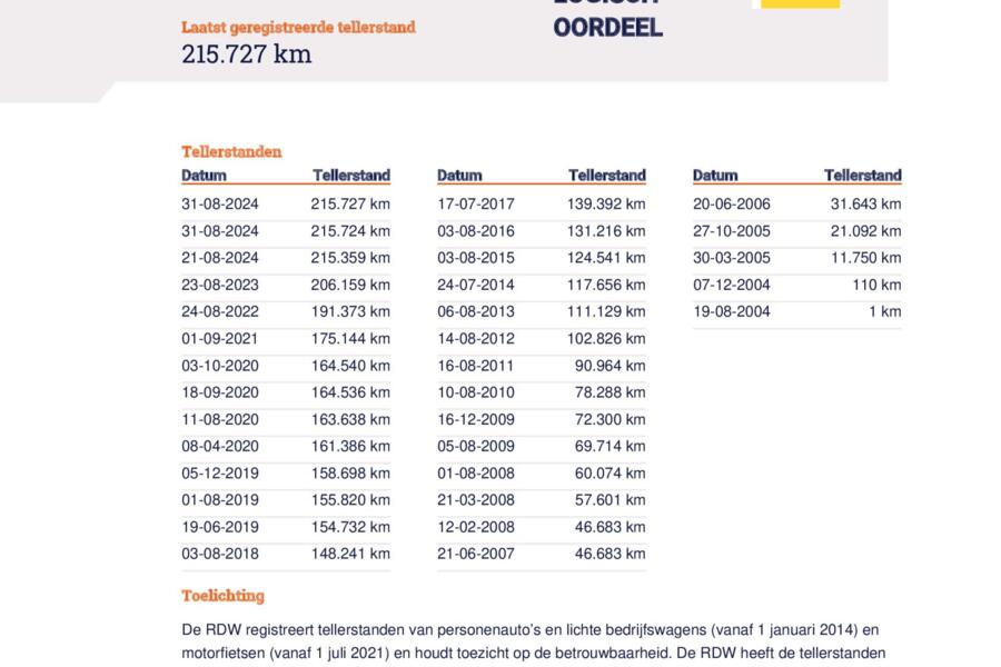Het NAP-logo staat alleen bij voertuigen die gecheckt zijn bij de RDW en waarbij de RDW een logisch oordeel heeft afgegeven ten aanzien van de reeks kilometerstanden.